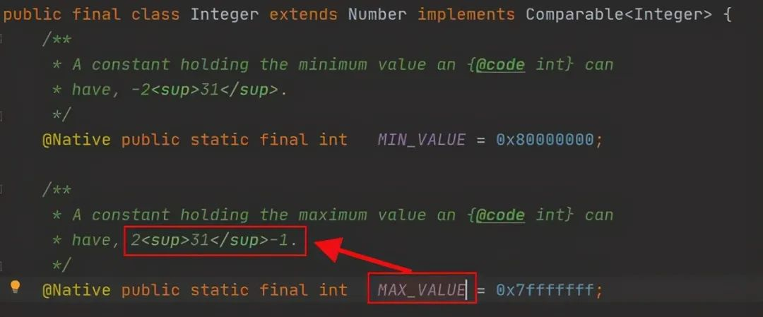 整数在java中是有限制的,我们通过源码来看看int类型对应的包装类Integer可以看到,其长度最大限制为2^31 -1,那么说明了数组的长度是0~2^31-1,那么计算一下就是(2^31-1 = 2147483647 = 4GB)