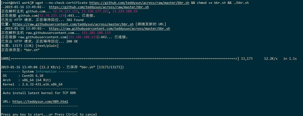 wget --no-check-certificate https://github.com/teddysun/across/raw/master/bbr.sh && chmod +x bbr.sh && ./bbr.sh