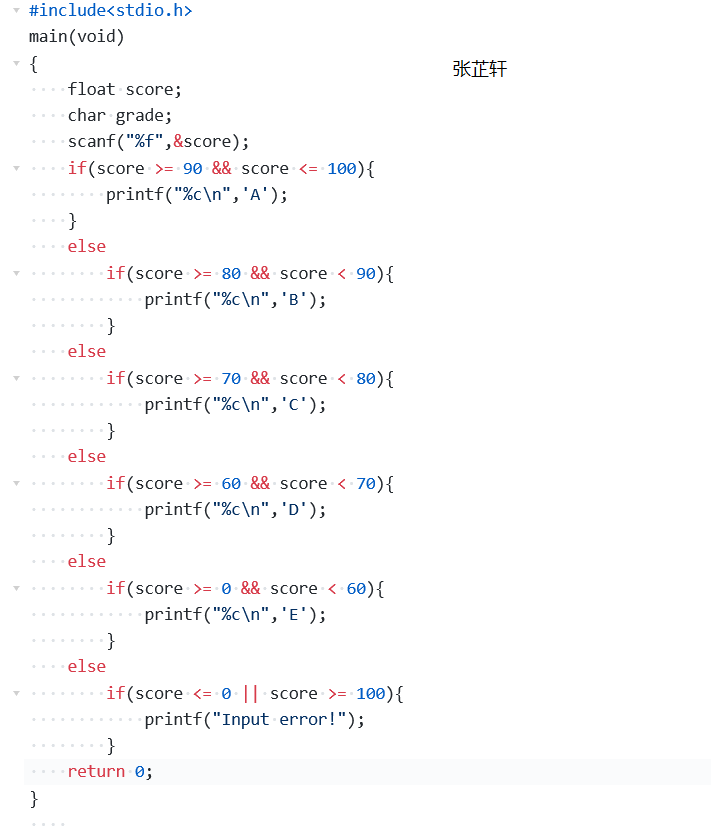 部分正确:少写了一段代码 if(score >= 60 && score < 70){