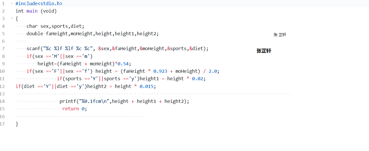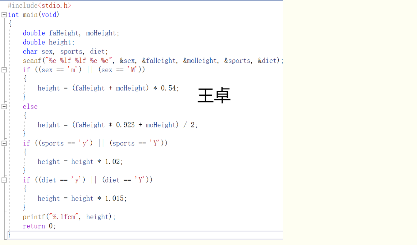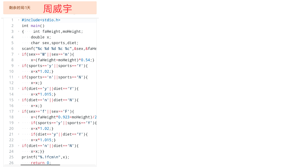 第二位同学的代码没有用double定义 faHeight和moHeight,而是用int。