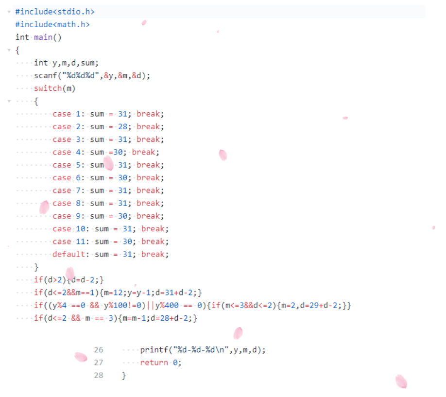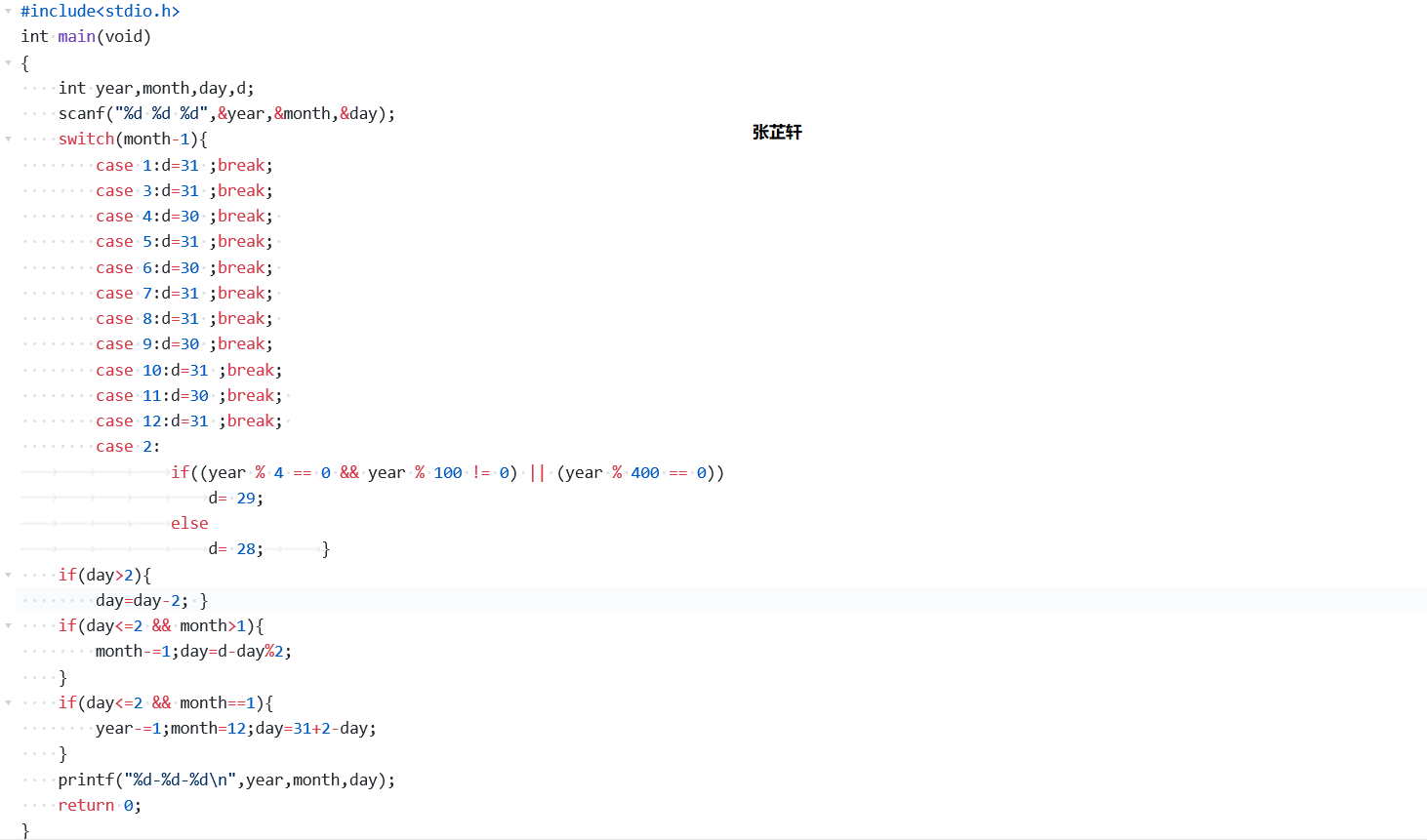 第二位同学是用switch结构计算每个月的天数,之后用if求闰年的各个情况计算。