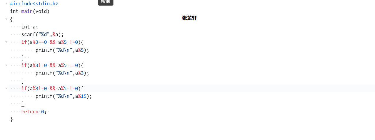 解决办法:输入if(a%3!=0 && a%5 !=0){