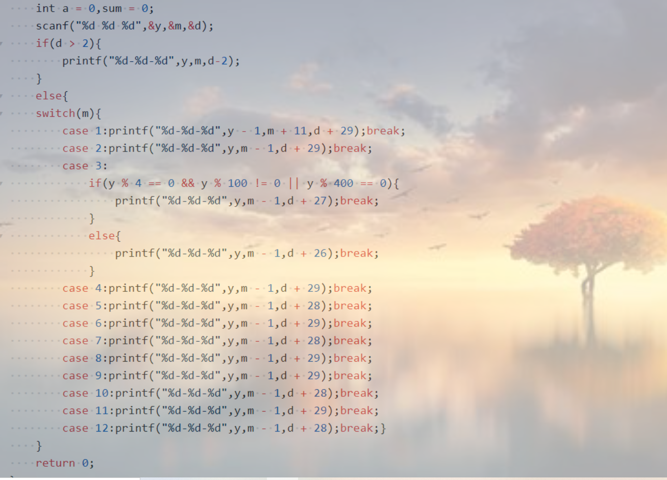 | 2020 5 12 | 2020- 5 -10 | 输出结果是输入的前天 |