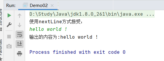 以Enter为结束符,也就是说 nextLine() 方法返回的是输入回车之前的所有字符