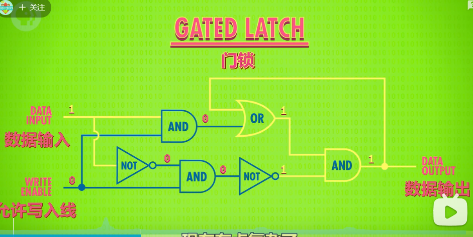 像二位数组一样,用行和列来唯一确定一个门锁的位置, 用一个AND门来控制是否写入,一个AND门来控制是否读出,这样使得所有的 date out 和 date in 线可以放在一起,只要控制哪一行那一列读入或写出的线打开就行,其他的门锁就不会起作用: