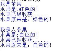 print("人参果原来是:" + Fruit.color + "的!") #输出类属性color