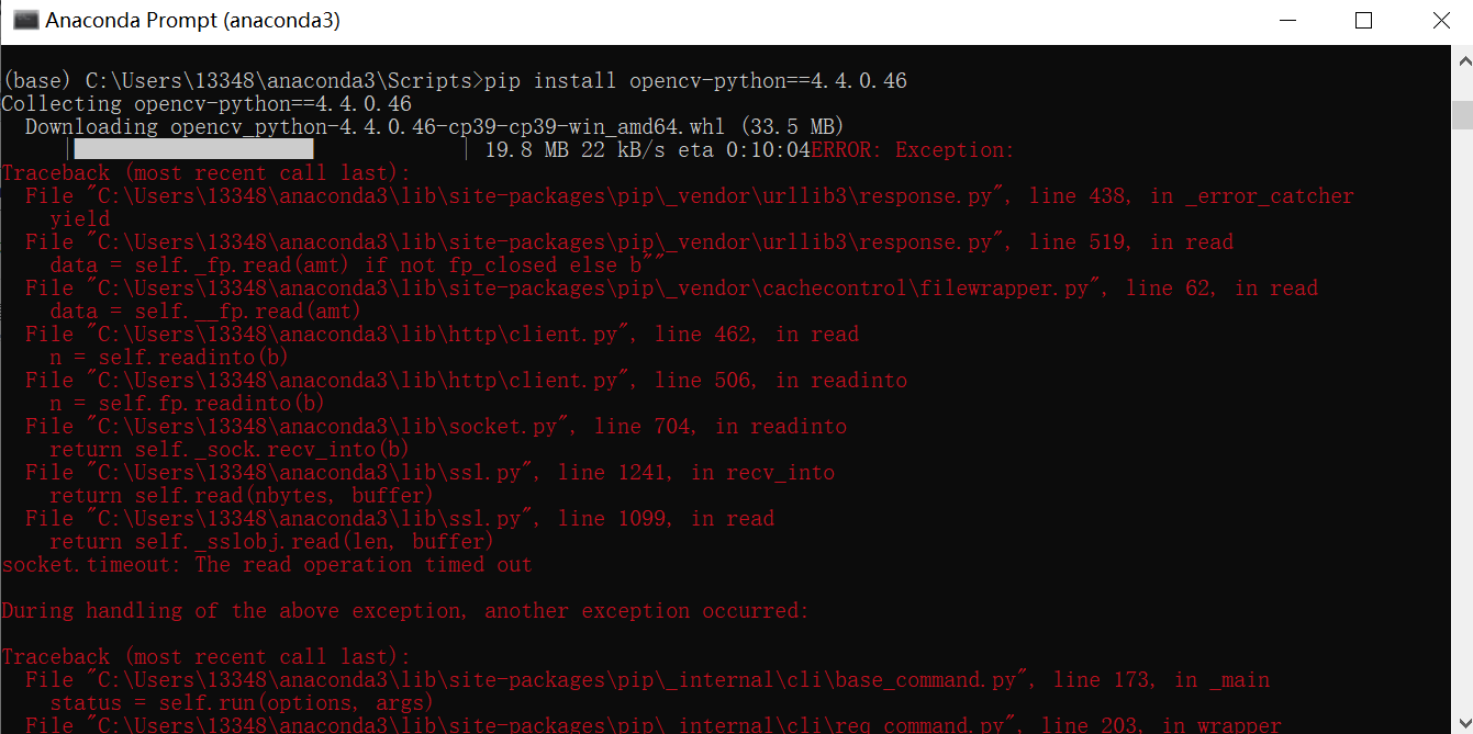 通过Anaconda3pip安装opencv-python包失败的处理方法(亲测有效)