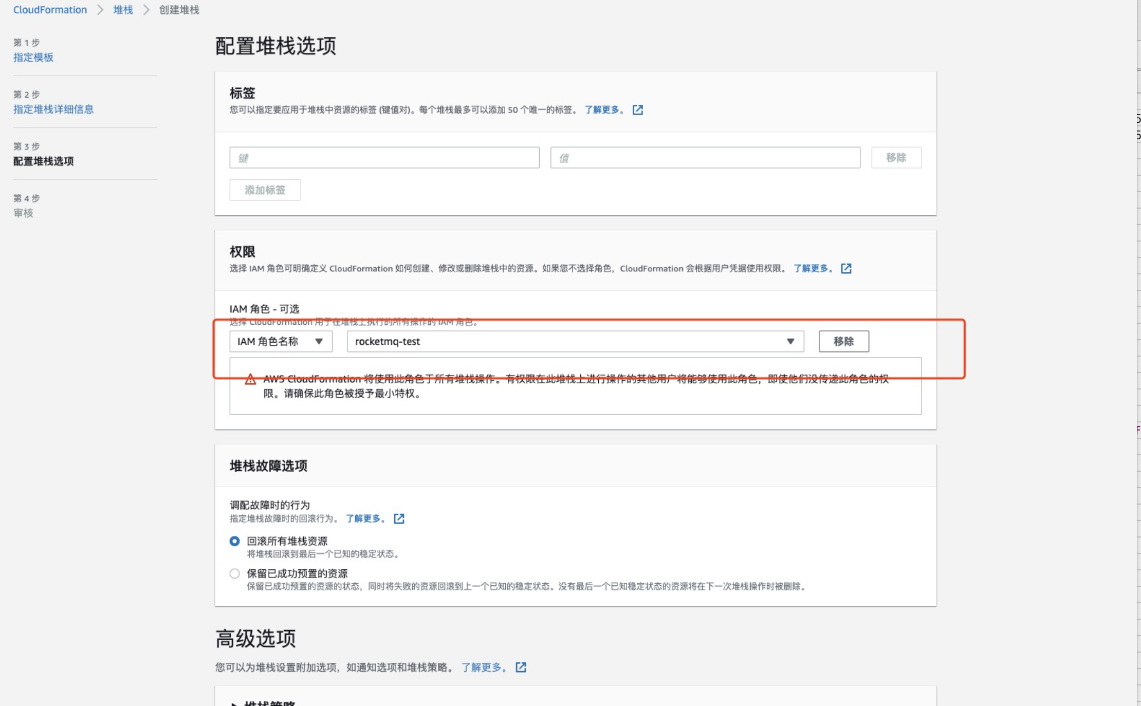 原因是添加基本信息时不需要添加IAM角色(留空即可)
