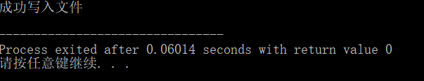 #include<iostream> #include<fstream> using namespace std; int main() { ofstream outfile("D:\\text1.txt"); outfile<<"成功写入文件"<<endl; outfile.close(); return 0; }
