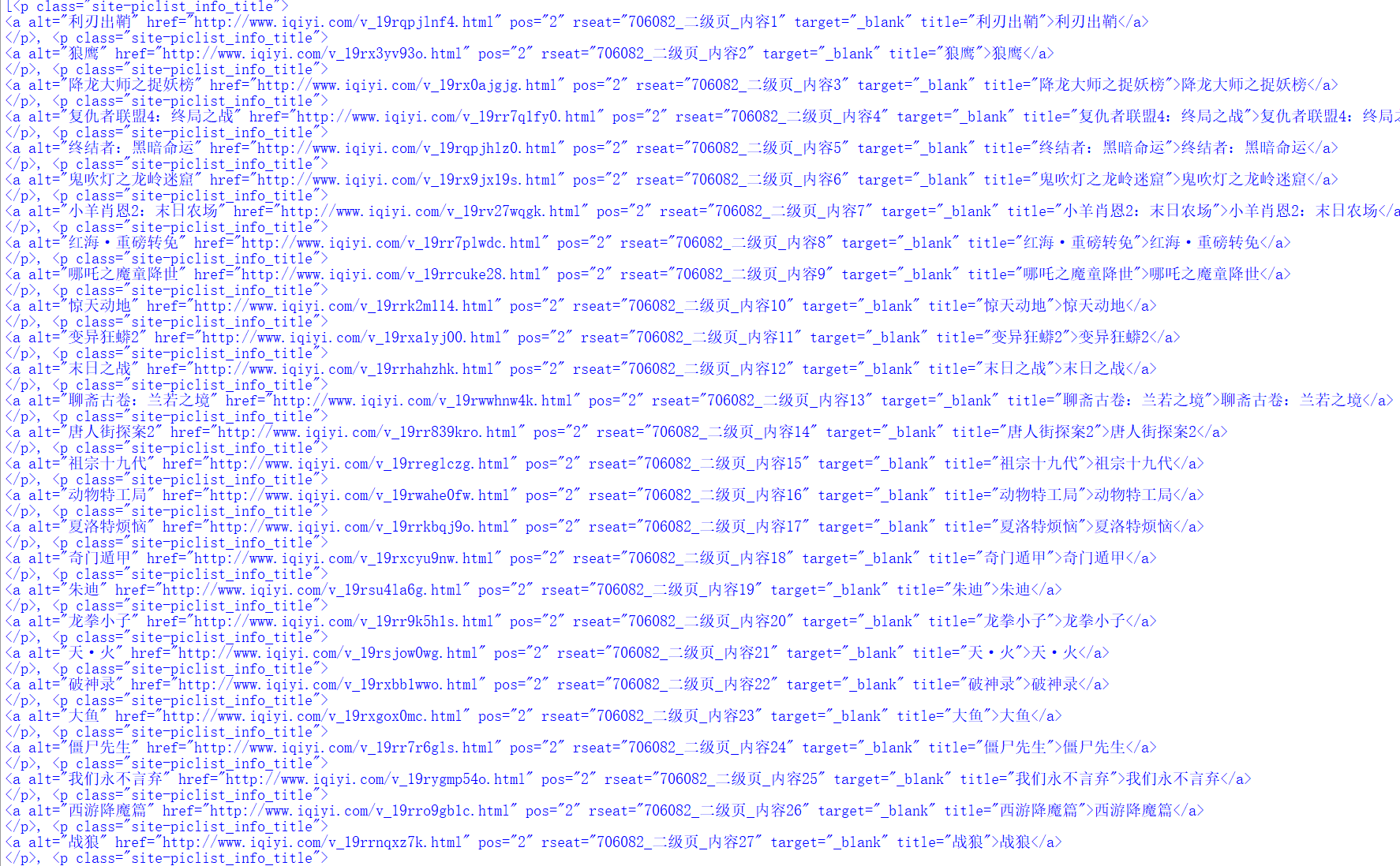 网站选取的是爱奇艺的电影排行