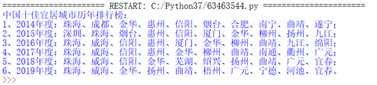 家乡大连呢,是一个非常漂亮的海滨城市,气候适宜,在十大宜居城市榜上有名。今天尝试利用python爬虫和数据分析,分析下大连几年内排行榜上排行变动情况。