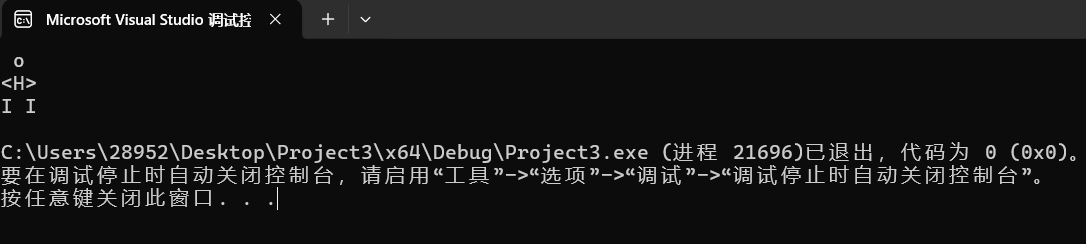 #include <stdio.h> int main() { printf(" o \n"); printf("<H>\n"); printf("I I\n"); printf(" o \n"); printf("<H>\n"); printf("I I\n"); return 0; }