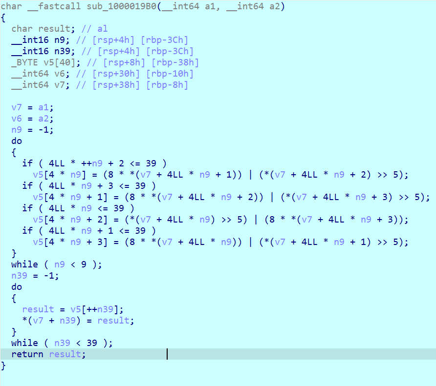 // b[i+2] = ((a[i] & 0x07) << 5) | ((a[i+1] >> 3) & 0x1f);
