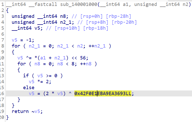 crc = (crc *2) ^ 0x42F0E1EBA9EA3693ULL;