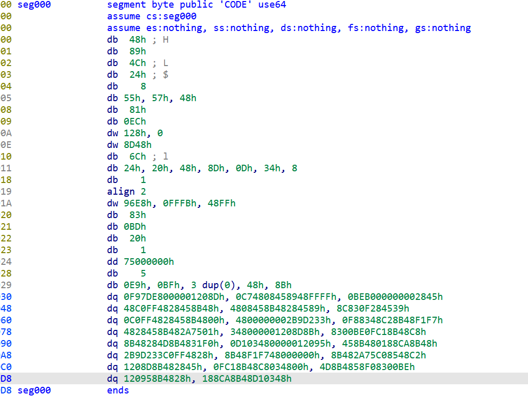 将十六进制数据生成为十六进制文件,再用ida打开