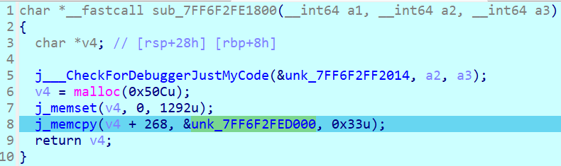 从main函数动调能够找到j_memcpy函数