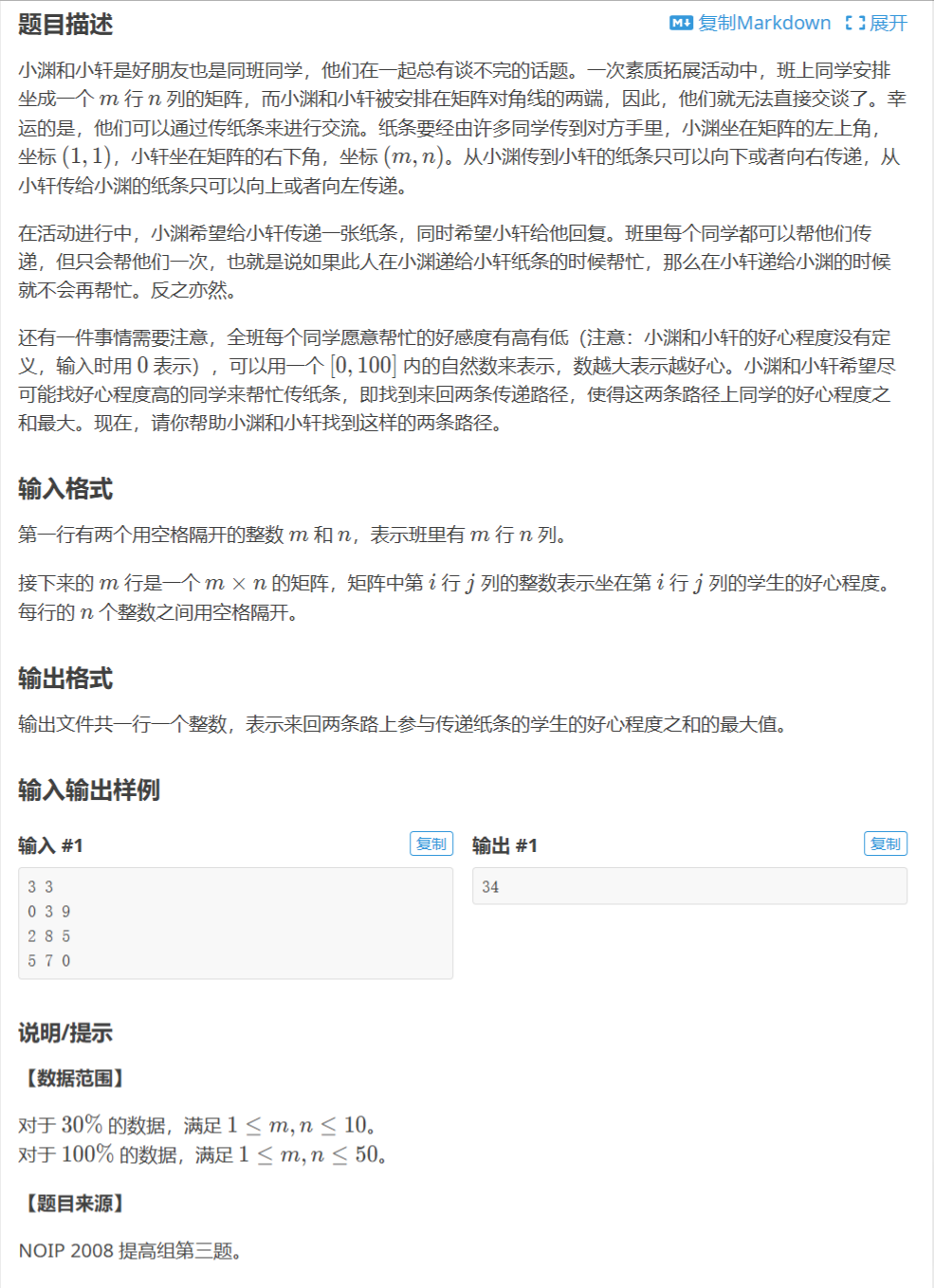 P1006 [NOIP2008 提高组] 传纸条