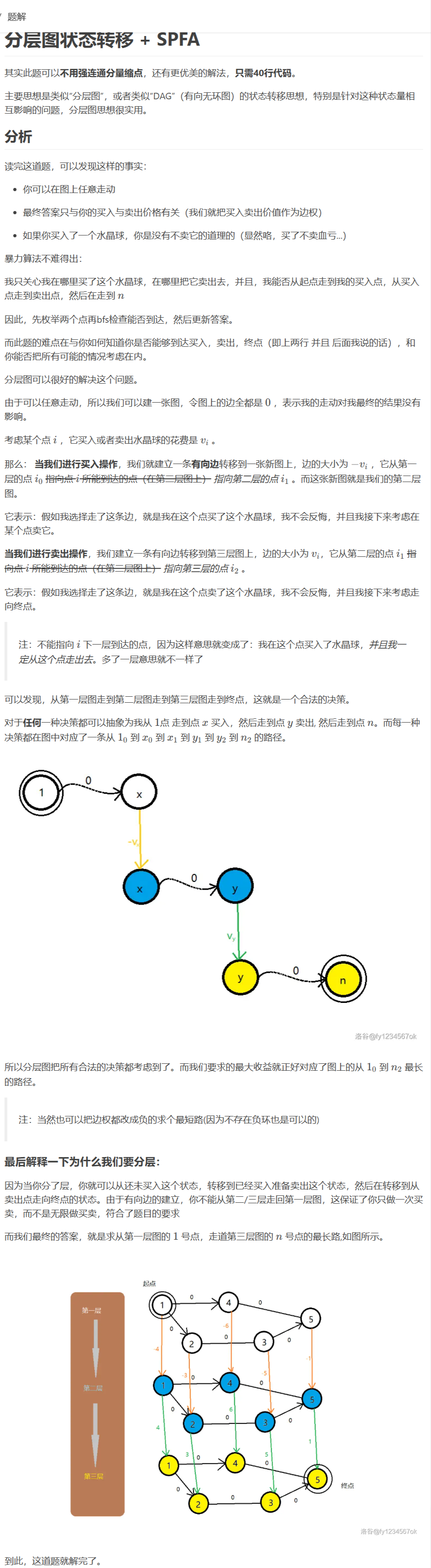 刚开始的思路是tarjan:缩点,统计每个强联通分量的min和max。然后再根据有向图去求答案。但是这样太过于繁琐,所以采用分层图的办法。这篇题解讲的已经够详细了:https://www.luogu.com.cn/article/7h7adii9。但是代码重新搓了个,用的是链式前向星。注意这里的边卡了,改成1e6才行。