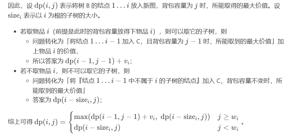 f[i][j]=max/min(f[i][j],f[i][j-k]+f[儿子节点编号][k]=.... - f[i][j]表示第i个节点取j个子节点(不包括自己)所取得的最大(最小)收益。