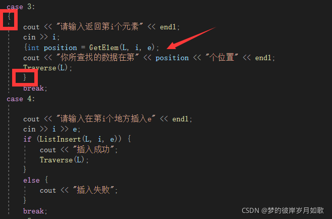错误: C2360 “position”的初始化操作由“case”标签跳过