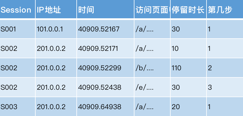 2.同一个ip的两条数据之间的时间差,如果大于30分,就不是同一个session,如果小于30分,就认为是同一个session