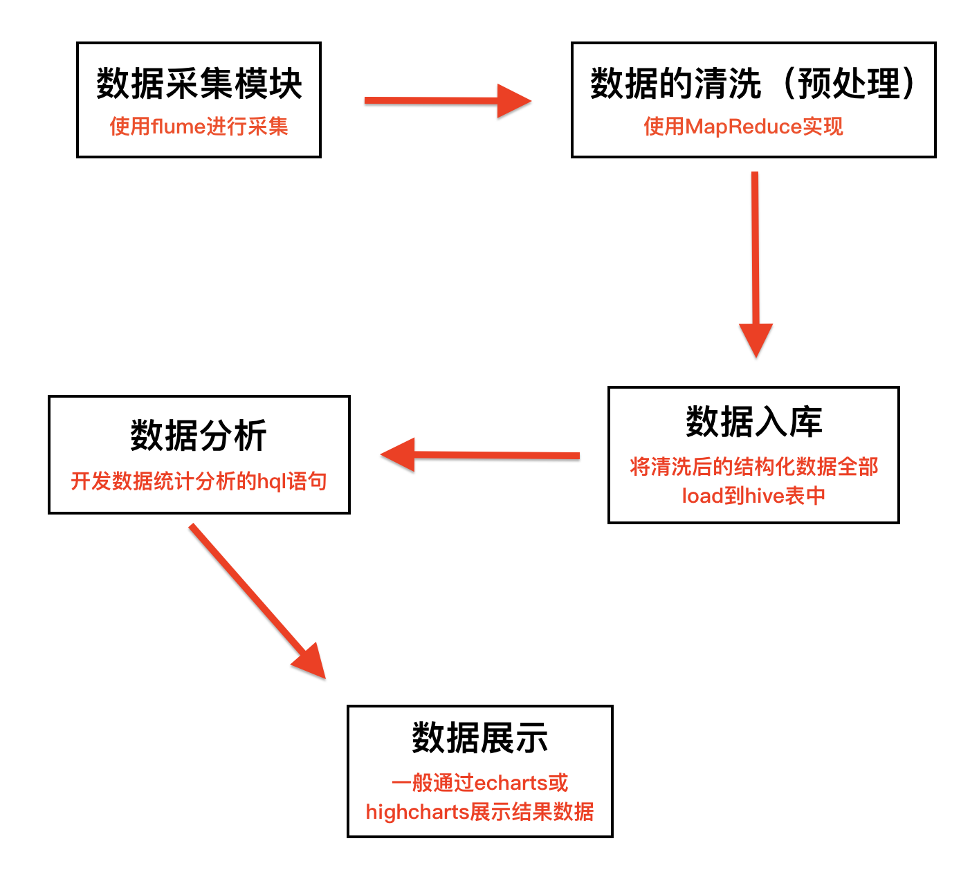 由于大量的指标统计从点击流模型中更容易得出,所以在预处理阶段,可以使用mr程序来生成点击流模型的数据。